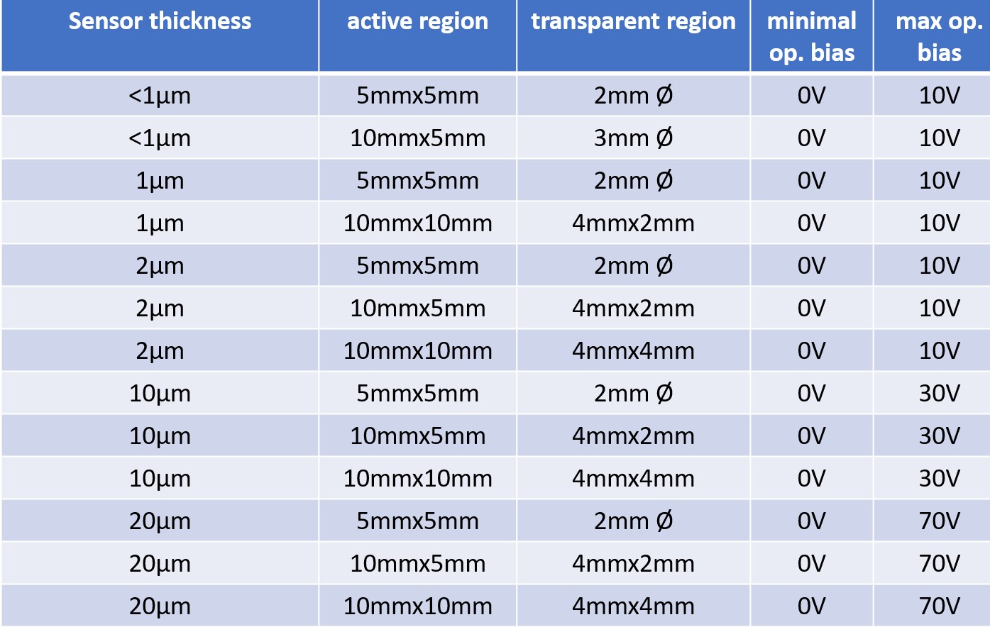 Tab.1 Price tag for different XBPM sensors, other geometries available upon request