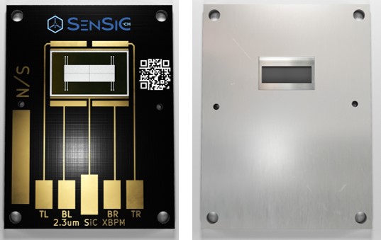 Product description and specifications: Silicon Carbide XBPM sensors are composed by diodes in 2x2-array configurations, with gaps of 6 μm, large active areas and a central region with defined high transparencies. XBPM are typically supplied together with 3x4 cm2 aluminum-core circuit boards for easy connection. Mounted sensors are air- as well as UHV- (10-8 mbar) compatible. Mounted sensors come also with metal covers to avoid damage to the sensor surface during handling and installation. All sensors can be operated at zero bias with >80% Charge Collection efficiency (CCE).
