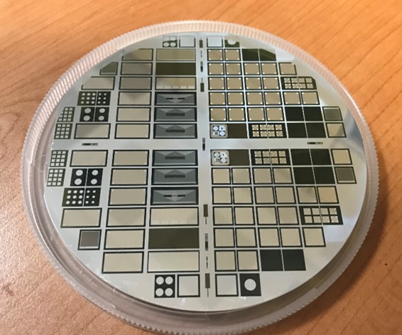 Fig.3 20μm SiC wafer showing all different devices: intensity, position and profile monitors with different geometries